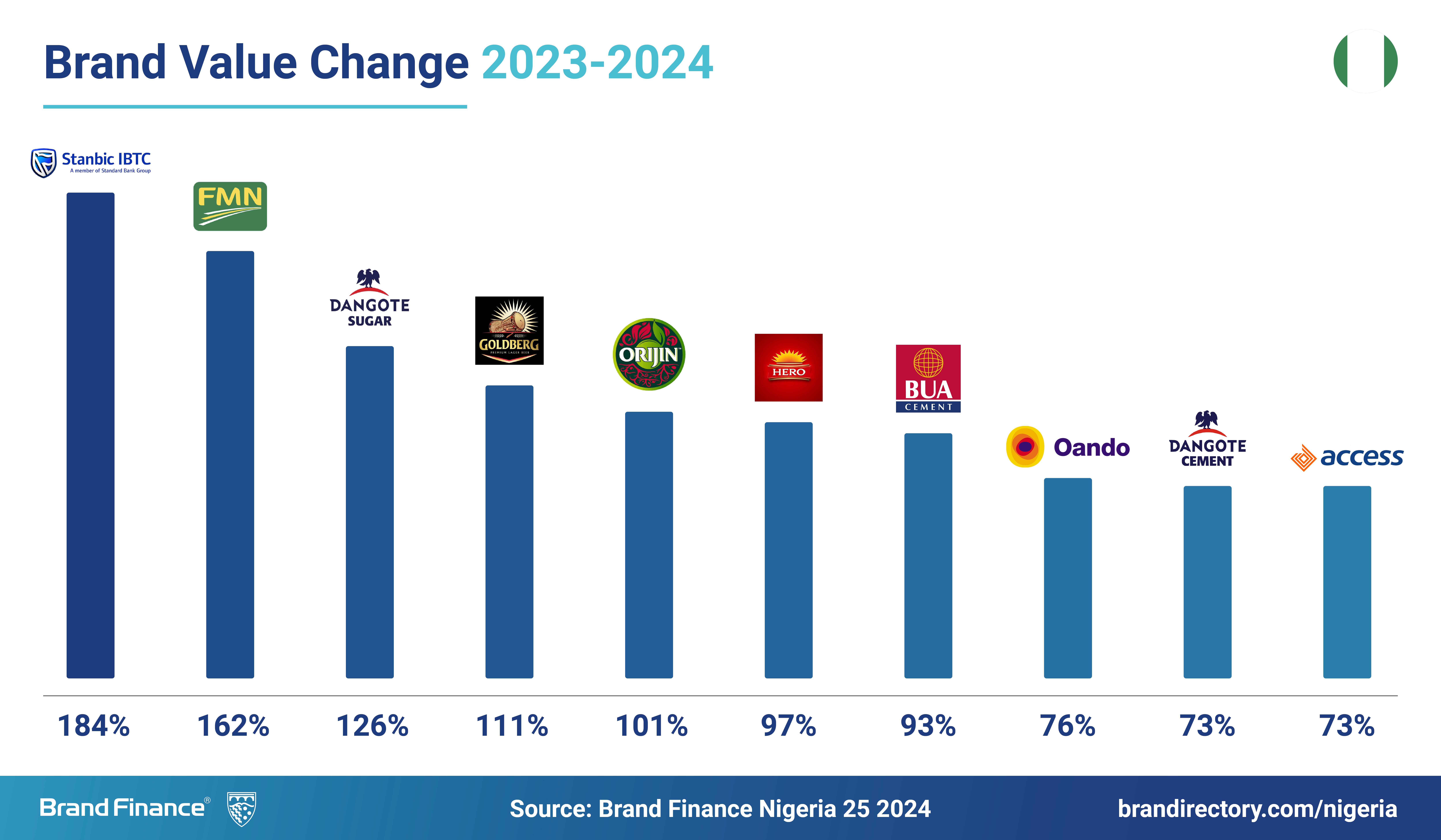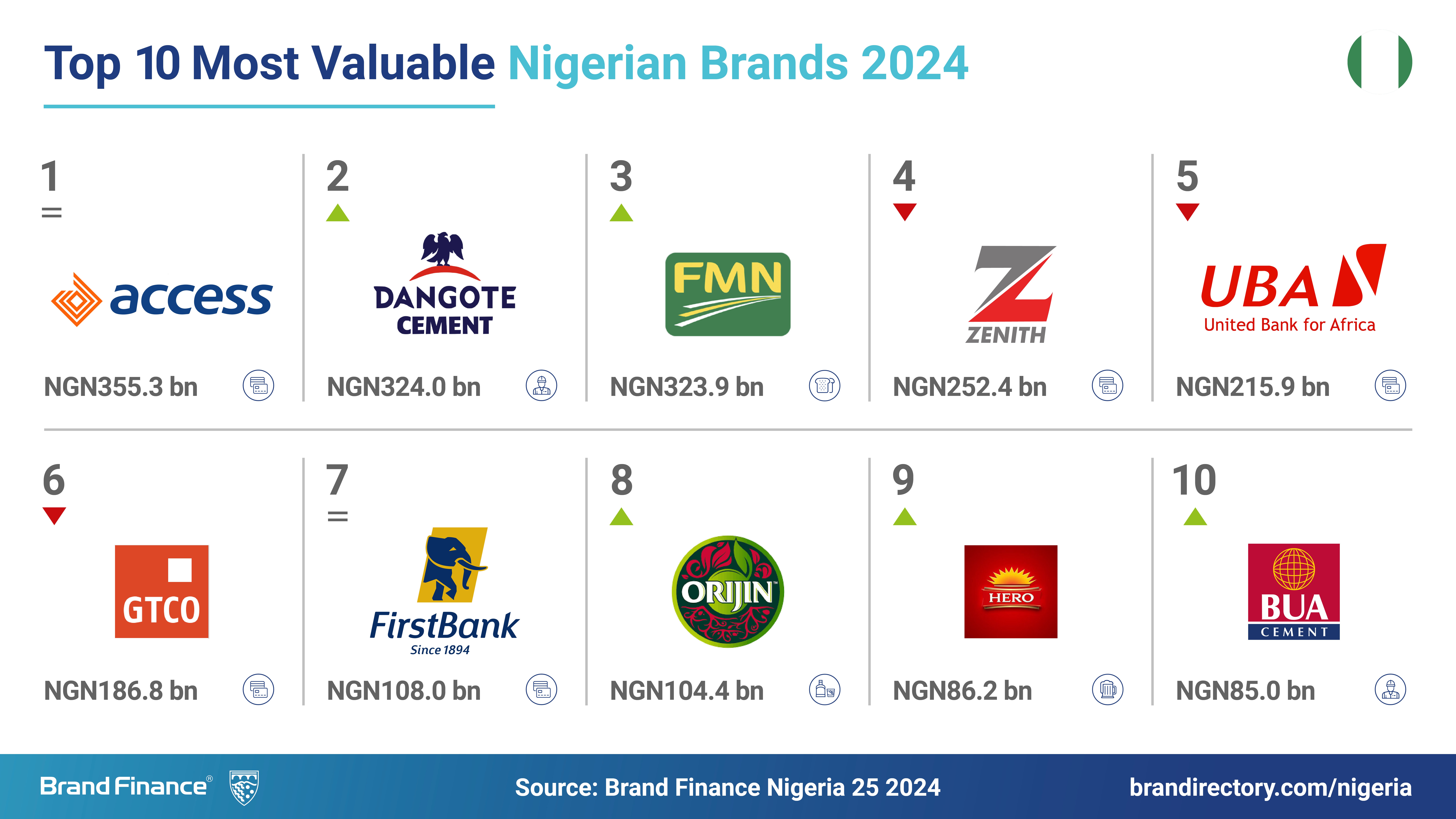 Access Bank maintains its dominance as Nigeria’s most valuable brand, with a 73% increase in brand value to reach NGN355.3 billion. This makes it the 31st most valuable brand across Africa in the Brand Finance Africa 200 2024. The brand value increase stems from improved revenues, primarily driven by significant growth in its interest-based income. Fellow bank Stanbic IBTC’s spiked interest income and improved profits also contributed to a brand value increase of 184% to NGN75 billion, making it the fastest-growing brand in the ranking.