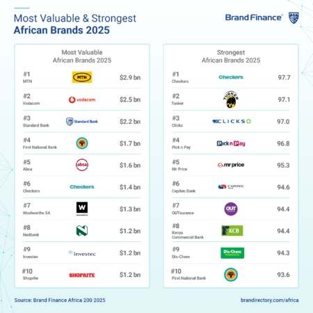 New data from Brand Finance reveals South Africa dominates regional rankings, contributing 71% of total brand value