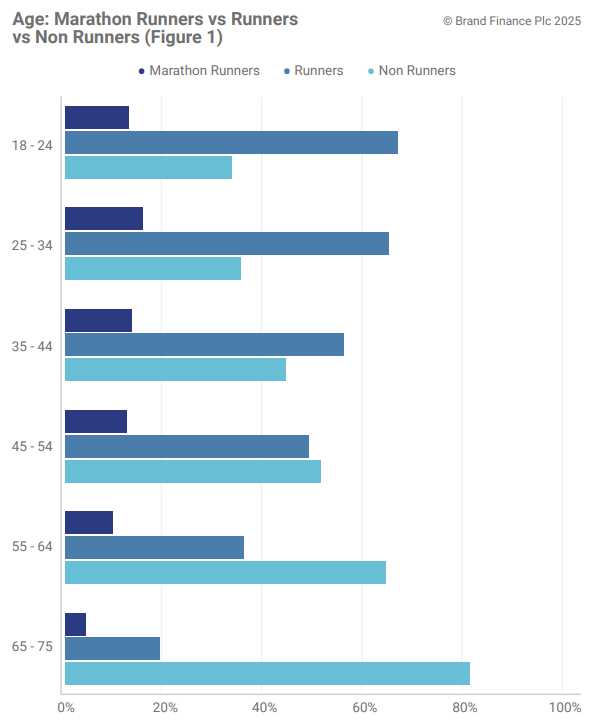 Brand Finance’s research into the world’s top marathon brands and their impact reveals detailed data on runners—their age, background, behaviours, and preferences. By analysing these factors, we can begin to uncover the key drivers behind the success of leading marathon brands and what makes them resonate with runners worldwide.