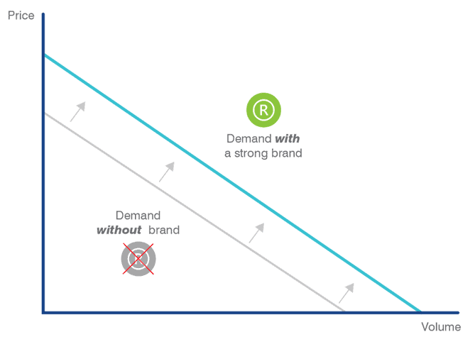 Among customers, the aim of brands is to make money and a strong brand will be one that stimulates the expansion of the demand curve when present compared to when not present. By stimulating additional demand, the brand has the effect of raising revenue and profit by either allowing for an increase in volume sold or price point or both.