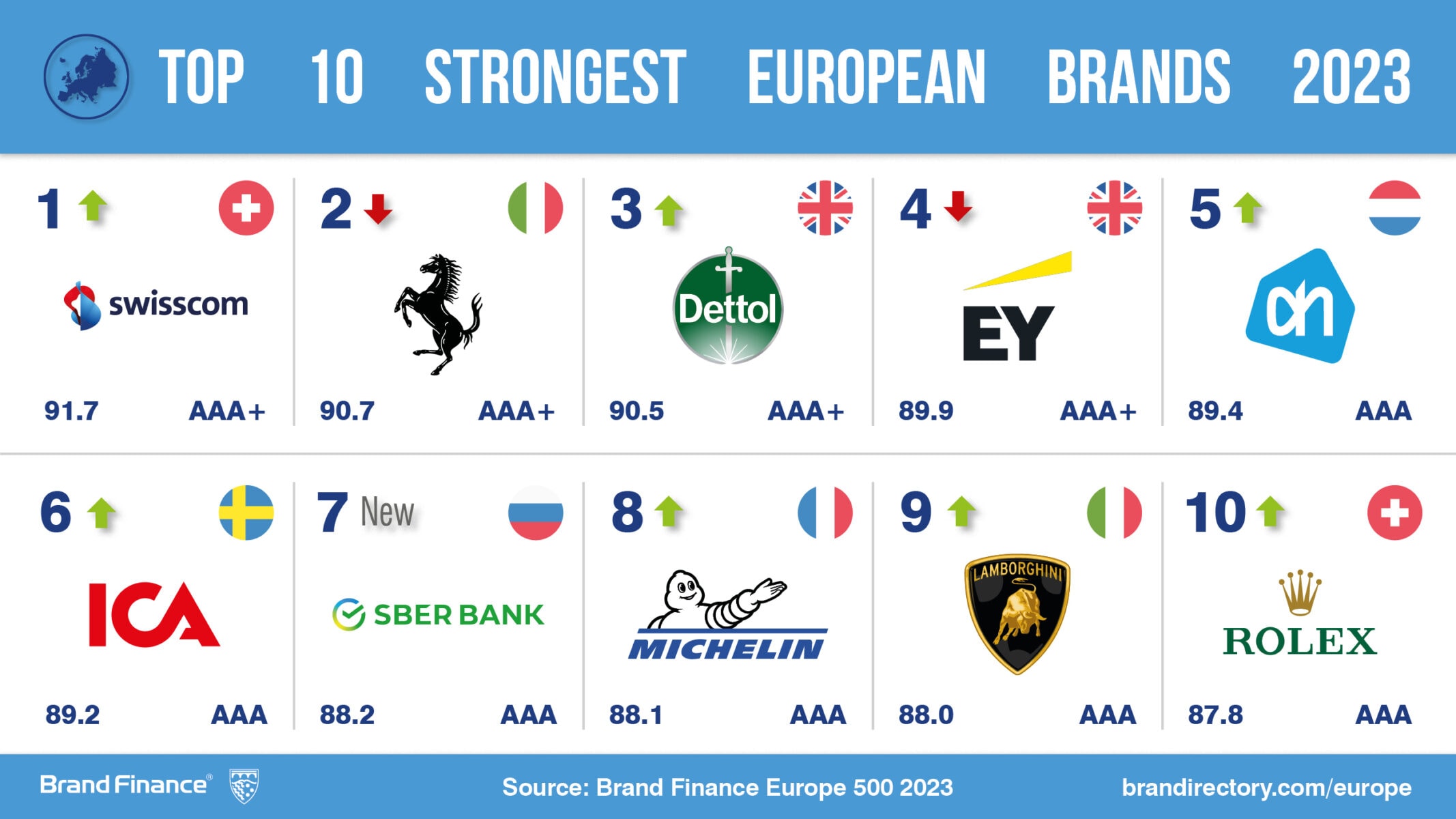 Da quanto emerge dal nuovo report di Brand Finance Europe 500 2023 - società di consulenza leader nella valutazione dei marchi - Deutsche Telekom, con una crescita del 17%, raggiunge i 60,7 miliardi di euro e supera Mercedes-Benz diventando il brand europeo di maggior valore.