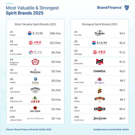 Corona Extra se mantiene como la marca de cerveza más valiosa del mundo, con un valor de marca de 13.400 millones de dólares. Heineken y Budweiser se mantienen en segundo y tercer lugar, respectivamente, manteniendo también sus clasificaciones de 2024. La estadounidense Michelob y la china Tsingtao han entrado en el top 10 por primera vez, mientras que Guinness regresa al top 10 por primera vez desde 2018.