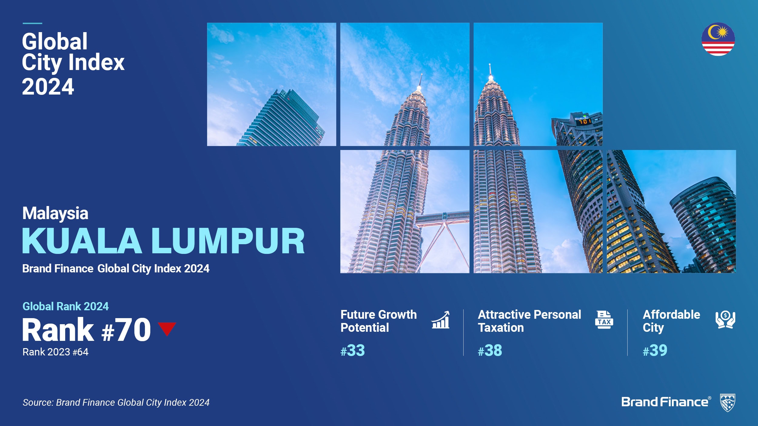 KUALA LUMPUR, 26th November 2024 – Malaysia’s capital city, Kuala Lumpur, holds the 33rd rank among global cities for perceived ‘future growth potential’, according to Brand Finance Global City Index, the most comprehensive global survey of city perceptions.