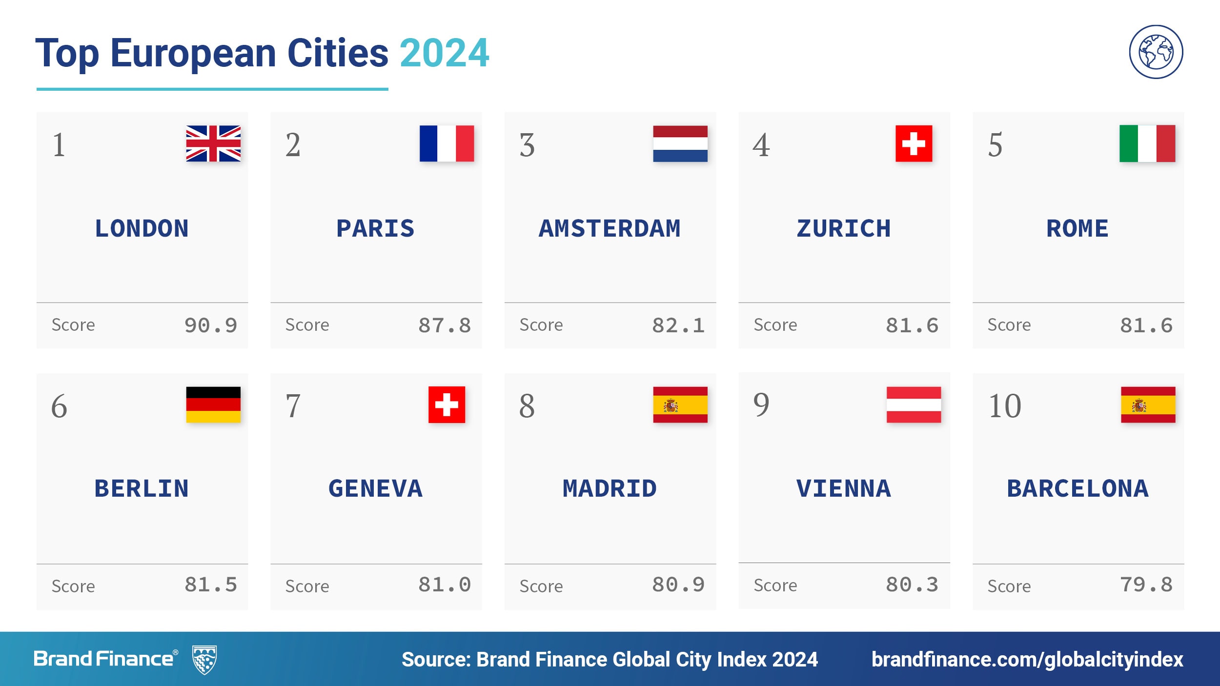 Come lo scorso anno, la classifica è dominata da Londra, New York e Parigi. Londra continua ad essere la città con il brand più forte al mondo grazie alla sua forte presenza internazionale, alla sua ricca identità culturale e alle rinomate università. Tuttavia, sfide come i costi elevati e le complessità dei visti post-Brexit, incidono sulla sua immagine.