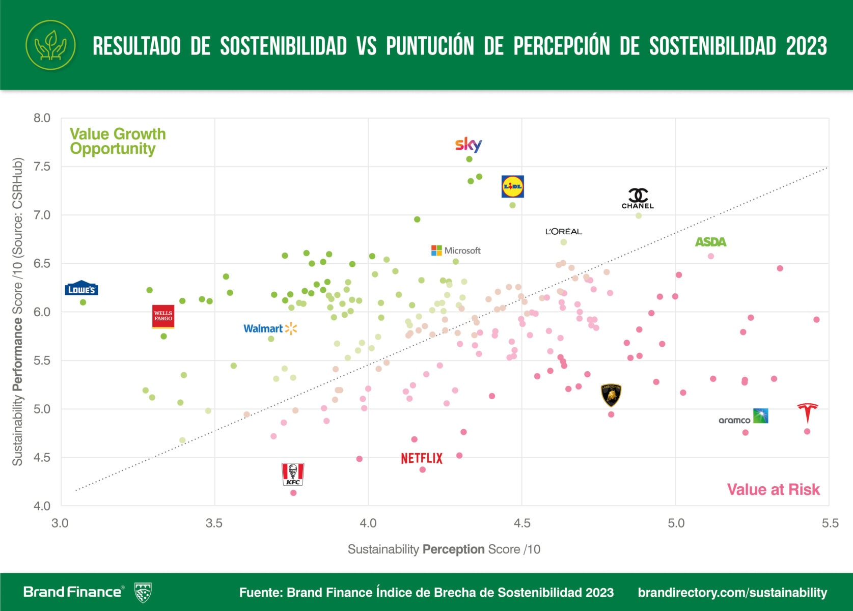 - El nuevo estudio de Brand Finance concluye que hay miles de millones en riesgo para las marcas más grandes del mundo si las percepciones de sostenibilidad no se alinean con el desempeño real de sostenibilidad.
